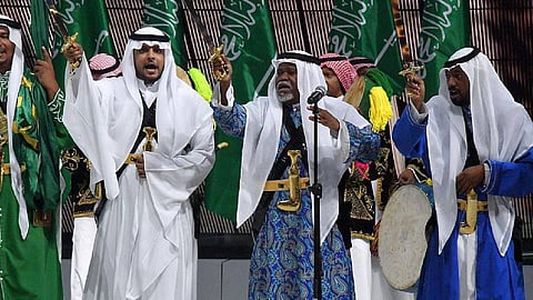وقدم جناح المملكة في إكسبو دبي، خلال حفل افتتاحه أمس، العرضة النجدية يرافقها شرحًا لمدلولاتها وتفاصيل الزي السعودي عبر الشاشة الخارجية للجناح.