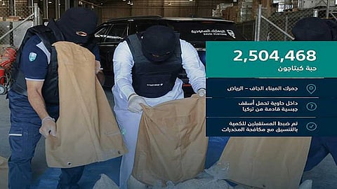 تمكّنت الجمارك السعودية بالميناء الجاف في مدينة الرياض من إحباط عملية تهريب كمية كبيرة من حبوب الكبتاجون بلغ عددها أكثر من (2,504,468) حبة كبتاجون، عُثر عليها مُخبأة في إرسالية وردت من خلال الميناء عبارة عن ألواح من الأسقف المستعارة قادمة من تركيا.