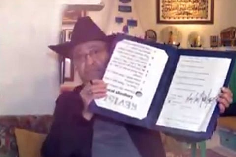 وانتشر مقطع مصور للفنان الكوميدي، وهو يوقع على وثيقة، موضحًا أن قراره ينص على إهداء ولاية كاليفورنيا الأمريكية للمكسيك، مضيفًا أن القيمة القانونية لقراره تساوي قيمة قرار ترامب الذي أهدى نتنياهو الجولان، قائلًا: «الجولان أرض سورية وستبقى كذلك».