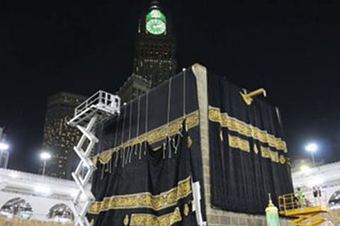 وانتهت رئاسة شؤون الحرمين من استبدال الكسوة المشرفة في زمن قياسي جديد، بلغ ساعتين ونصف الساعة، في عملية شارك فيها 116 صانعًا وفنيًا.