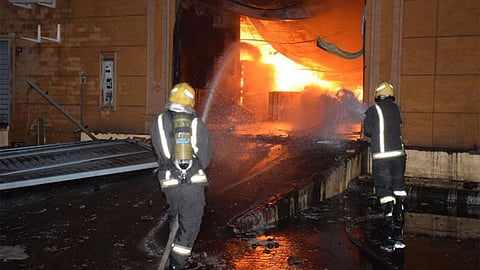 تمكّنت فرق الدفاع المدني بمدينة الرياض فجر اليوم الأحد من إخماد حريق في مستودعين متجاورين في حي المصانع بالرياض.
