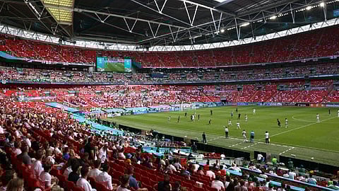تعتزم الحكومة البريطانية فتح أبواب ملعب «ويمبلي» بلندن أمام 45 ألف متفرج خلال مباراتي قبل النهائي والمباراة النهائية لبطولة الأمم الأوروبية لكرة القدم «يورو 2020».