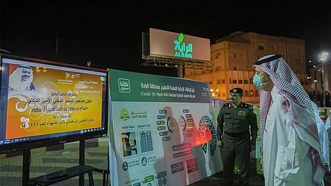 وفور وصول الأمير مقر المبادرة بجوار قاعة الأمير فيصل التعليمية بمدينة الباحة، شاهد لوحة تعريفية بجهود إدارة تعليم المنطقة في الحد من انتشار فيروس كورونا، مستمعًا لشرح من المدير العام للتعليم بمنطقة الباحة الدكتور عبدالخالق بن حنش الزهراني، عن تلك الإنجازات والجهود التي تتضمت تنفيذ 1200 محاضرة، و 497 فيلمًا ونشرة توعوية، و 980 تصميم جرافك، و 3850 إذاعة مدرسية، و 37 ملتقى ودورات تدريبية، و40 برنامج تدريب عن بعد، و 695 متطوعًا من منسوبي التعليم، وتفعيل التعليم عن بُعد عبر قنوات التي فعلتها الوزارة، بالإضافة إلى الخِدْمات الاستشارية، ومشاركة الكشافة في إسكان العمال بــ 36 مبنى مدرسيًّا.