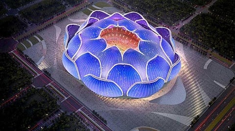 وقالت المجموعة إنها اختارت تصميم اللوتس كزهرة صينية تقليدية، وأكدت أن المصمم حسن سيد، المقيم في شنغهاي، كان وراء التصميم، وسيضم الاستاد مناطق ترفيهية وتجارية ولتناول الطعام ومن المرجح استكماله بنهاية عام 2022.