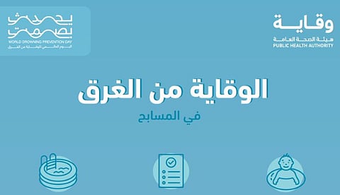 كشفت هيئة الصحة العامة عن بعض الإرشادات الوقائية للوقاية من الغرق في المسابح.