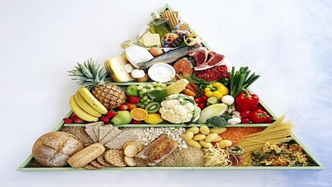 ويشير الهرم الغذائي إلى أن الوجبة المتوازنة يجب أن يتكون نصفها من الخضراوات الخالية من النشويات والربع من البروتينات الخالية من الدهون والربع الأخير من النشويات.