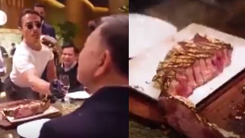 الصور تم التقاطها في مطعم الشيف التركي نصرت غوكجه، المشهور برش الملح على اللحم بطريقة مميزة، وبإطعام زبائنه المهمين بيده.