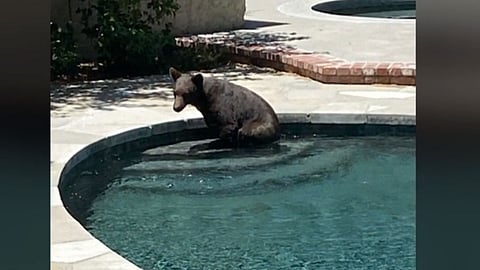 فوجئ أحد سكان ولاية كاليفورنيا الأمريكية، بوجود دب في مسبح بباحة منزله الخلفية، وذلك هربًا من درجات الحرارة المرتفعة.