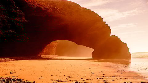يقع شاطئ الجزيرة على ساحل المحيط الأطلسي في المغرب، بين مدينتي ميرلفت وسيدي إفني، وكان الشاطئ معروفًا بأقواسه الحجرية المثيرة للإعجاب، والتي تشكلت بسبب سنوات من التآكل.