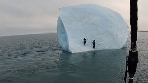 انقلب جبل جليدي في المحيط المتجمد الشمالي كان يحمل مغامرَين حاولا تسلقه في عرض البحر، قبل أن يتم إنقاذهما من موت محقق.
