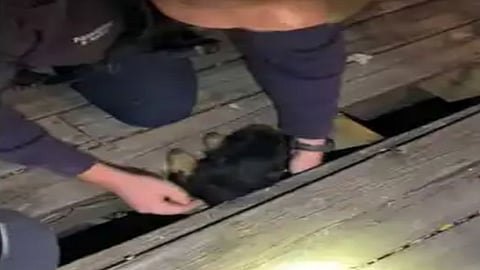 تمكن رجال الإطفاء في ولاية أيوا الأمريكية، من تحرير جرو صغير، محاصر تحت ألواح خشبية على سطح سفينة.
