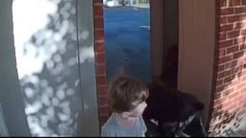 التقطت كاميرا الأمن المنزلي لعائلة في ولاية «لويزيانا» اللحظة التي التقى فيها طفلٌ صغيرٌ ودبٌّ صغير وجهًا لوجه خارج منزل الصبيّ مباشرة.