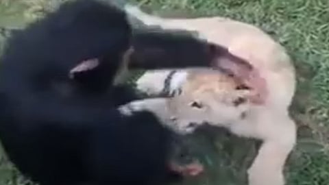 وقالت الصحيفة، إن الشبل الذي يدعى بينتا ويبلغ من العمر 6 أشهر اعتاد على اللعب والتصارع على العشب مع شمبانزي صغير في الثالثة من عمره واسمه يمباني، وهو ما يظهر في الفيديو الذي نشرته «ديلي ميل» وانتشر على صفحات التواصل الاجتماعي.