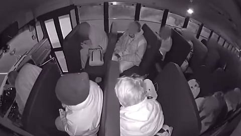 ويظهر خلال المقطع، السائق وهو يطلب منهم الخروج عبر فتحة السقف، لحظة انقلاب الحافلة وتطاير التلاميذ بداخلها.