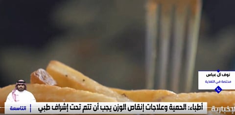 وقالت "آل عباس" عبر قناة الإخبارية"، اليوم الإثنين، إن اتباع نظام غذائي صحي ومتوازن مع ممارسة الرياضة من أفضل الحلول الصحية لانقاص الوزن.
