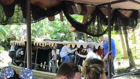 فزوار مدينة «ديزني لاند» الشهيرة نشروا صورًا ومقاطع مصورة على مواقع التواصل الاجتماعي للحظات التي بدأ فيها قارب «المملكة السحرية» بالامتلاء بالماء والغرق وعلى متنه العديد من الركاب.