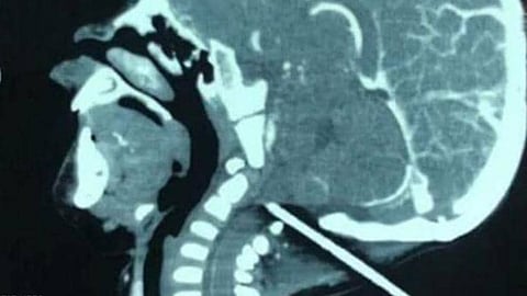 وفوجئ الأطباء برجل يحمل طفلًا وقضيبًا بارزًا من رأسه، وبفحصه بواسطة الأشعة تبيَّن أنَّ القضيب استقرَّ على مسافة ملليمترات معدودة من قاع الجمجمة والأوعية الدموية الحيوية التي تغذيها.