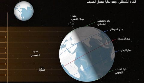 وأضاف الحصيني عبر حسابه على موقع التواصل الاجتماعي "إكس"، أن هذا الحدث الفلكي يعلن دخول فصل الصيف فلكياً في النصف الشمالي من الكرة الأرضية، حيث يُسجَّل في هذا اليوم أطول نهار وأقصر ليل خلال العام، لتبدأ بعده تدريجياً عودة النهار إلى التناقص لحساب الليل، وذلك بعد ثلاثة أيام من تعامد الشمس على مدار السرطان.
