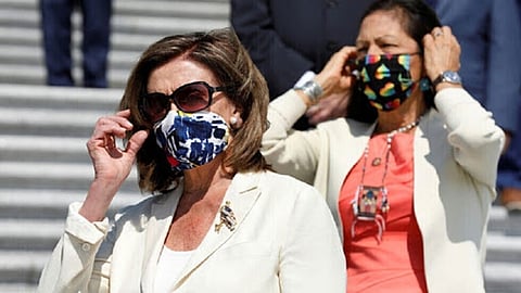شددت رئيسة مجلس النواب الأمريكي نانسي بيلوسي على ضرورة قيام أعضاء المجلس والموظفين بارتداء الكمامات خلال جائحة فيروس كورونا، وأضافت أنه سيتم السماح للأعضاء برفع الكمامات عند مخاطبة المجلس، مع الالتزام بالكمامة كدلالة على احترام صحة وسلامة ومصلحة الآخرين، وأنه سيتم توفير كمامات عند أماكن الدخول إلى المجلس.