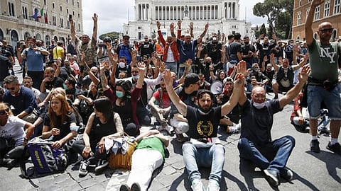 تظاهر عدة آلاف في العاصمة الإيطالية روما أمس السبت احتجاجًا على السياسة الصحية للحكومة في مواجهة فيروس كورونا وتم تنظيم المظاهرة على الرغم من ارتفاع عدد الإصابات بالعدوى مؤخرًا.