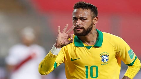 ونجح نجم باريس سان جيرمان، في تسجيل «هاتريك» خلال مباراة البرازيل ضد بيرو، أمس الثلاثاء، في تصفيات كأس العالم، والتي انتهت لصالح السامبا بأربعة أهداف مقابل هدفين، ليرتفع رصيد نيمار من الأهداف الاي سجلها بقميص منتخب بلاده إلى 64 هدفًا، متقدما على رونالدو بهدفين، فيما لدى بيليه 77 هدفًا.