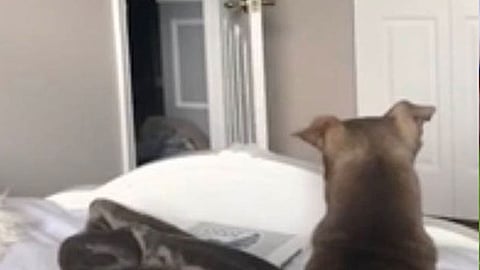 ويظهر في المقطع المصور باب غرفة ينغلق بقوة كما لو أن «شبحا» يدفعه، والمثير في الأمر هو رد فعل كلب ظهر في المقطع المصور، وعلامات الدهشة والرعب التي اعترت وجهه.