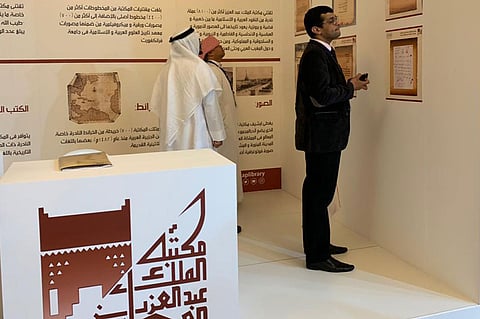 وقدمت المكتبة بجناحها نماذج عما تحتويه من وثائق نادرة، وخرائط، ومجلات قديمة، وكتب نادرة، وصور، حيث تملك المكتبة 1800 وثيقة عن تاريخ المملكة والملك المؤسس، كما تضم مقتنيات كثيرة من مصادر المعرفة بمجموعة متميزة من الكتب العربية والنادرة التي تعد من أولى الكتب العربية التي تمت طباعتها في أوروبا، بالإضافة إلى مجموعات من المجلات العربية التي يعود تاريخ بعضها إلى العام 1860م.