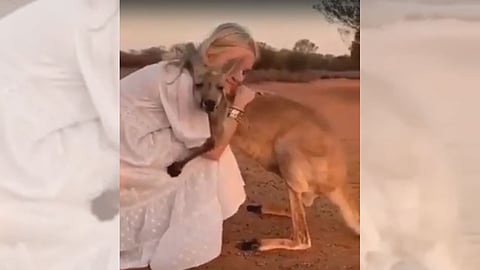ويظهر في الفيديو الذي جذب انتباه وتعاطف مغردين المرأة تحاول تهدئة الكنغر الذي كان يَئِنّ، وتبدو عليه ملامح الخوف والفزع من شدة النيران التي تهدد ملايين الأفراد والحيوانات.