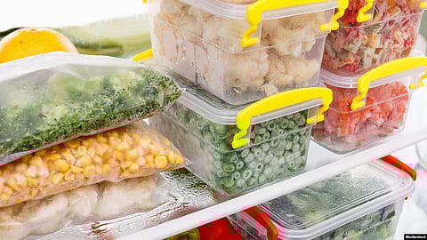 إذا لاحظت أن الخضراوات والأعشاب الطازجة لديك لن تصمد طويلًا، أو أنك لست بحاجة إليها الآن، فيمكنك قطع السيقان صلبة الجيدة منها ووضعها في كيس ثلاجة لتجميدها، والسحب منها حسب الحاجة، كما يمكنك تقطيعها أو حتى فرمها والاحتفاظ بها في كيس بالمجمد لاستخدام حفنة منها في أي وقت.