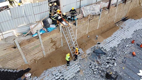 بالصور.. وفاة عاملين في انهيار جدار بجدة والدفاع المدني يتدخل