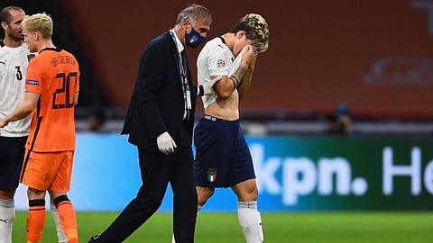 وأضاف البيان أن متوسط الميدان الإيطالي الواعد خرج من القمة الأوروبية، قبل دقائق من نهاية الشوط الأول في اللقاء الذي أقيم في ملعب «أمستردام أرينا» بالعاصمة الهولندية، والتي حسمها الأزوري بهدف دون رد.