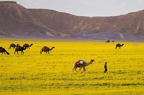 حوَّلت بشائر الربيع منطقة الجوف إلى مناظر خلابة جعلتها أشبه بلوحة فنية رائعة مزركشة بألوان طبيعية تكسوها في موسم ربيعي فريد؛ لتبهر زائريها بالوان الأخضر والأصفر والبنفسج والأبيض والأحمر على جبال الشمال وسهولها ورمالها.