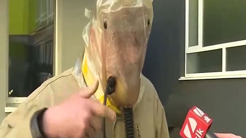 ابتكر رجل أوكراني بدلة كاملة للحماية من الفيروسات، مع انتشار فيروس كورونا الجديد (كوفيد 19)، والغريب أنه دعمها بخرطوم في الجزء العلوي للبدلة محل الرأس ليمكنه من التدخين دون خلعها.