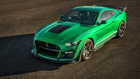 ونلاحظ من الصور أن السيارة حصلت على طلاء أخضر فريد بنكهة كلاسيكية، والذي تم استلهامه من النموذج الأولي لطراز GT500 موديل 1968، والذي كان يُعرف باسم Green Hornet أو الدبور الأخضر.