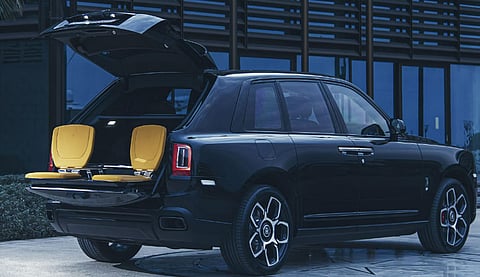 داخلية سيارات رولز رويس تصنف بأنها تمنح الركاب تجربة تسمى بـMagic Carpet Ride، وهذا طبعاً يعود إلى أعلى مستويات الراحة والفخامة، ونجد داخل مقصورة رولز رويس كولينان بلاك بادج 2022 طبقات عديدة من كاربون فايبر بحيث تبدو وكأنها ثلاثية الأبعاد، ومقاعد بكسوة جلدية فاخرة باللون الأسود مع لمسات باللون الأصفر، ومقعدين إضافيين في الخلف عند الصندوق يمكن تعديلهم للتمتع بالمناظر الخارجية ، وسقف مُزين بإضاءة تبدو وكأنها نجوم في السماء.