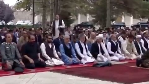 ونشر التلفزيون الأفغاني مقطع فيديو يظهر إقامة صلاة عيد الأضحى داخل حرم القصر الرائسي في كابول، وسط دوي انفجارات في محيط القصر.