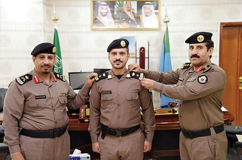 قلد مدير شرطة منطقة الحدود الشمالية اللواء جعيدان بن متعب المطيري؛ الرائد سعيد محمد عسيري رتبته الجديدة، بعد صدور المرسوم الملكي الذي يقضي بترقيته إلى رتبة «مقدم».