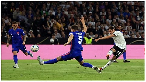 سجل ثلاثية ألمانيا في شباك إنجلترا كل من كاي هافيرتز هدفين، وإلكاي جوندوجان (ركلة جزاء) في الدقائق (52، 67 و87)، بينما جاءت أهداف المنتخب الإنجليزي جاءت عن طريق لوك شو وماسون ماونت وهاري كين (ركلة جزاء) في الدقائق (71، 75 و83).