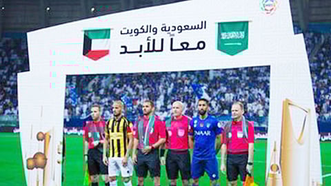 ونزل لاعبو الفريقين إلى أرضية الملعب، متوشحين بكوفيات عليها أعلام المملكة العربية السعودية بالإضافة إلى أعلام دولة الكويت، كما ارتدى أعضاء الجهازين الفنيين نفس الكوفيات، التي كُتب عليها كلمة «أخوة»، الأمر الذي يدل على مدى الترابط بين السعودية والكويت.