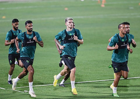 واصل الفريق الأول لكرة القدم بنادي الاتفاق تدريباته مساء اليوم الأحد على ملعبه الرديف .