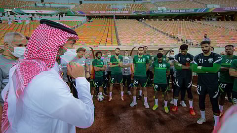 بعث الأمير عبدالعزيز بن تركي الفيصل، وزير الرياضة رئيس اللجنة الأولمبية العربية السعودية، اليوم الجمعة، رسالة خاصة إلى لاعبي المنتخب السعودي بعد حسم بطاقة التأهل رسميًّا إلى نهائيات كأس العالم 2022، المقرر في قطر نوفمبر المقبل.