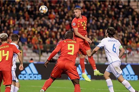 بات منتخب بلجيكا أول المتأهلين لنهائيات كأس الأمم الأوروبية لكرة القدم (يورو 2020)، بعدما حقق فوزًا كبيرًا 9 / صفر على ضيفه منتخب سان مارينو أمس الخميس، في الجولة السابعة بالمجموعة التاسعة للتصفيات المؤهلة للبطولة.