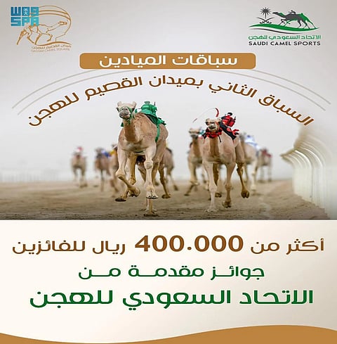 وأوضح مدير الميدان عبدالله بن دليم البدراني أن هذا السباق هو أحد السباقات التي ينظمها ويرعاها الاتحاد السعودي للهجن، ورصد لها في ميدان القصيم جوائز تقدر بأكثر من 2.500.000 ريال، موجهاً الدعوة لجميع محبي هذه الرياضة العريقة لحضور السباق.