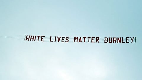 وحلَّقت طائرة مجهول فوق استاد الاتحاد، الذي استضاف اللقاء المنتهي بخماسية نظيفة لصالح كتيبة المدرب الإسباني جوارديولا، وهي تحمل رسالة جاء فيها «حياة البيض مهمة، بيرنلي».