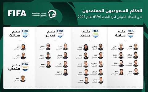أعلن الاتحاد الدولي لكرة القدم "فيفا" اعتماد قائمة الحكام السعوديين المعتمدين لعام (2025) والتي ضمت (21) حكمًا و(3) حكمات.