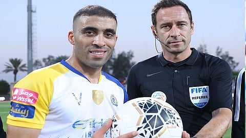 تصدر المغربي عبدالرزاق حمد الله مهاجم فريق النصر، صدارة اللاعبين أصحاب الأهداف الثلاثة «هاتريك»؛ وذلك منذ انضمامه إلى صفوف النصر.