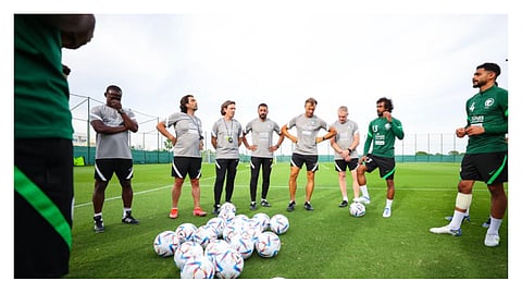 ميدانيًا، أجرى لاعبو المنتخب حصة تدريبية تحت إشراف المدير الفني إيرفي رينارد، بدأت بتمارين الإحماء ثم تمرين المربعات، قبل أن يجري تقسيمة من مجموعتين، لتختتم الحصة التدريبية بالكرات الثابتة.
