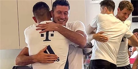 وظهر البولندي داخل ملعب «أليانز أرينا» أمس الاثنين، من أجل التقاط بعض الصور التذكارية مع الألقاب والكؤوس التي حققها طوال مشواره مع العملاق البافاري.