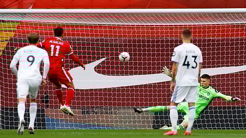 وقام الفرعون المصري بتنفيذ ناجح لركلة الجزاء بتسديدة صاروخية في منتصف المرمى تمامًا لم يتمكن الحارس إيلان ميسلير من توقعها بشكل صحيح؛ مع العلم بأن ركلة الجزاء تحصَّل عليها ليفربول، إثر تسديدة من صلاح اعترضها مدافع ليدز بيده.