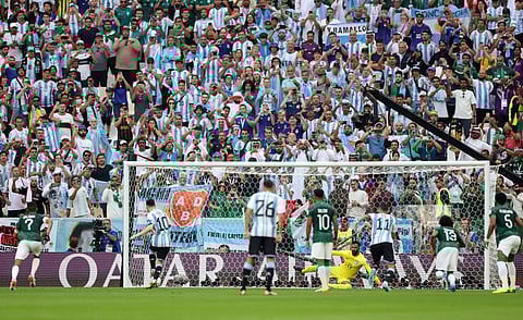 منح النجم الأرجنتيني ليونيل ميسي التقدم لمنتخب بلاده في الشوط الأول أمام السعودية بهدف دون مقابل، ضمن منافسات الجولة الأولى للمجموعة الثالثة بنهائيات كأس العالم 2022، المقامة في قطر.